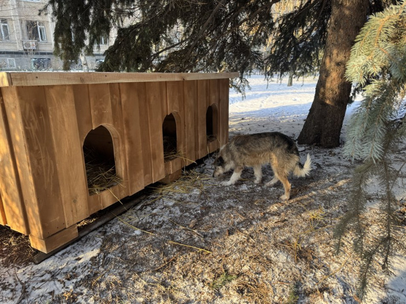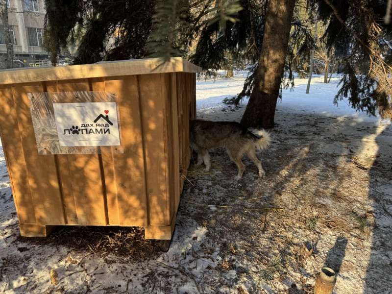 Дерев’яну будку на три віділення для безпритульних собак встановили благодійники та зооволонтери у Полтаві. Конструкцію розмістили у парку поблизу університету економіки і торгівлі. Зробили це, щоб тварини могли перебувати там у сильні морози, розповіла ініціаторка проєкту Катерина Манжула.