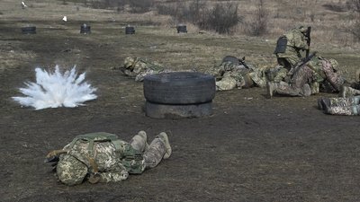 Українські військовослужбовці полку «Скеля» під час польових військових навчань. Getty Images/AFP/Genya Savilov