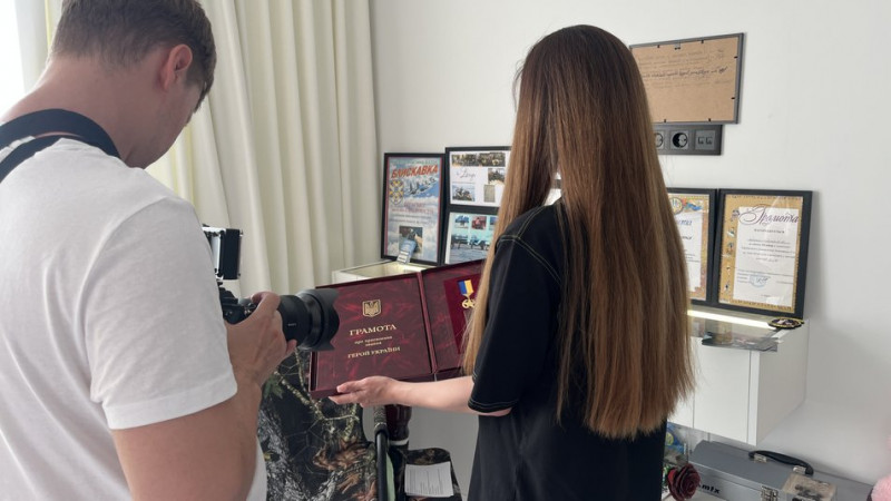 Дружина Дениса Кирилюка Альона із нагородою чоловіка. Суспільне Полтава