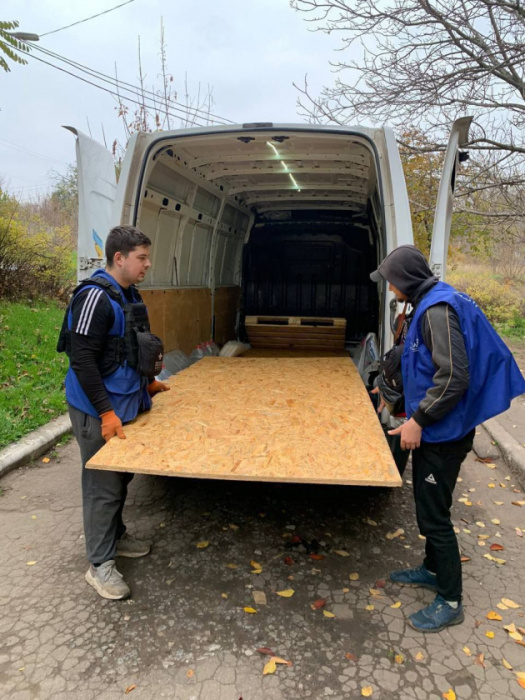 До складу наборів увійшли листи ОСБ, дерев’яні дошки, брезент та інші матеріали, необхідні для проведення першочергових ремонтних робіт.