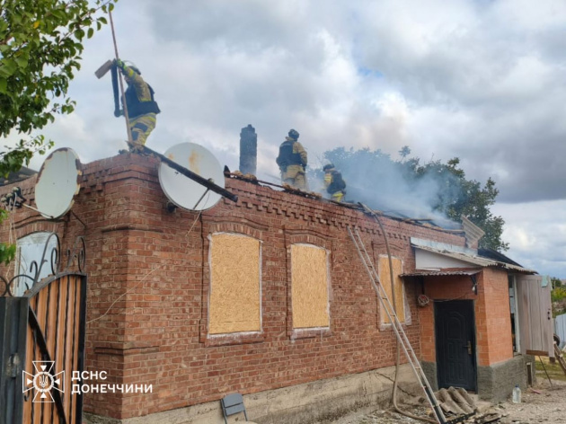 У селищі Олексієво-Дружківка через обстріл зайнялася покрівля приватного житлового будинку. Рятувальники ліквідували пожежу на площі 150 кв. м.