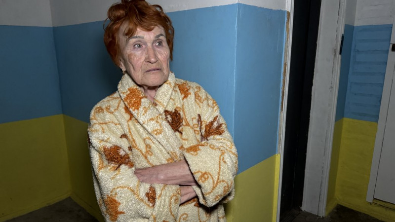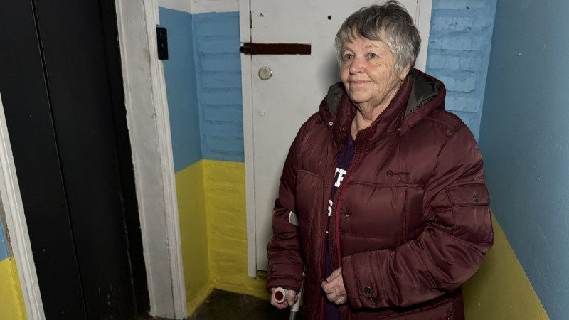 "18 годин немає світла (на добу, – ред.). Буває, що й 20 немає. Скажіть, будь ласка, як мені вийти погуляти з цією тростинкою? Болять ноги, мені дуже важко спускатися і я сиджу вдома, бо я не можу спуститись. Навкарачки я можу триматися за перила і піднятися, а спускатися мені дуже важко", — розповіла мешканка багатоповерхівки Поліна Сізон.