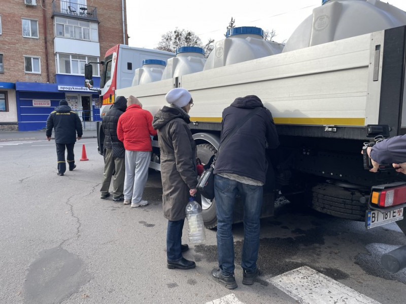 Люди набирають воду у Полтаві під час відключення. Суспільне Полтава