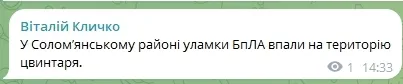 Крім того, у Соломʼянському районі уламки БпЛА впали на територію цвинтаря. У цьому районі, за інформацією мера, ще одному постраждалому медики надали допомогу на місці.