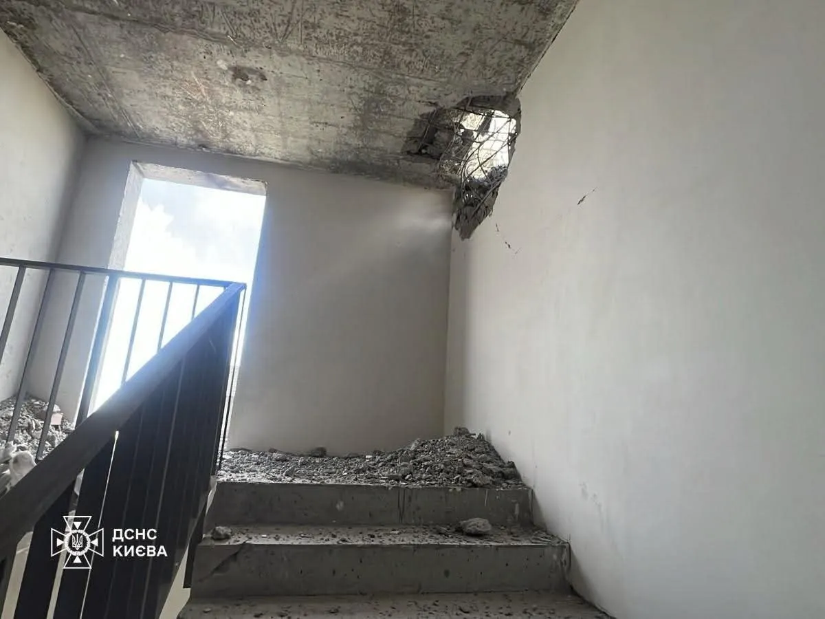 «Також уламки впали на дах недобудови в Шевченківському районі, спричинивши пожежу. Екстрені служби прямують на місця. Інформація щодо постраждалих уточнюється», – додав Кличко.