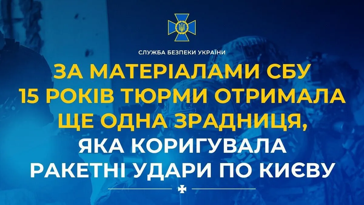 «За доказовою базою Служби безпеки 15 років ув’язнення з конфіскацією майна отримала ще одна агентка ФСБ, яку викрили в липні 2022 року на коригуванні повітряних атак рашистів по Києву«, – розповіли в пресслужбі.