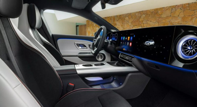 У стандартне оснащення входять LED-фари, панорамний дах, 17-дюймові колеса, цифрова панель 10,25″, мультимедіа 14″, підігрів сидінь, розширений пакет асистентів та навіть система розпізнавання обличчя. Дорожчі комплектації додають підсвічування, безключовий доступ, проєкційний дисплей, паркувальні системи MB.Drive та пасажирський екран MBUX.