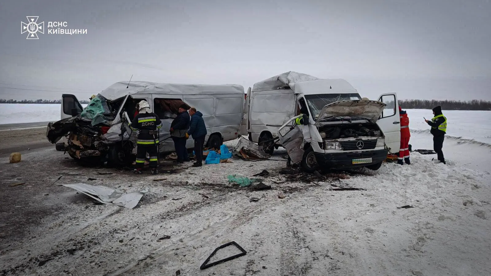 За словами рятувальників, у четвер, 5 лютого, о 15:59 до Служби порятунку надійшло повідомлення про ДТП за участі трьох мікроавтобусів, яка сталася у Білоцерківському районі на трасі Київ – Одеса.