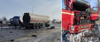 Під Києвом зіткнулись дві вантажівки: є загиблий, виник затор. Фото та відео У Броварському районі Києва, поблизу села Калинівка, сталась ДТП за участі кількох вантажних авто. Новости Киева