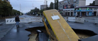 Потоп в Одесі: пошукові роботи завершено Фото: Getty Images Провал на дорозі в Одесі, який стався через повінь 30 вересня Новости Одессы
