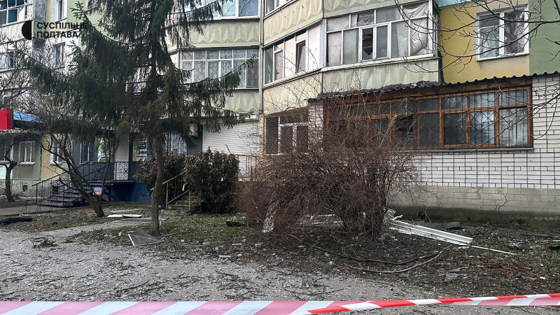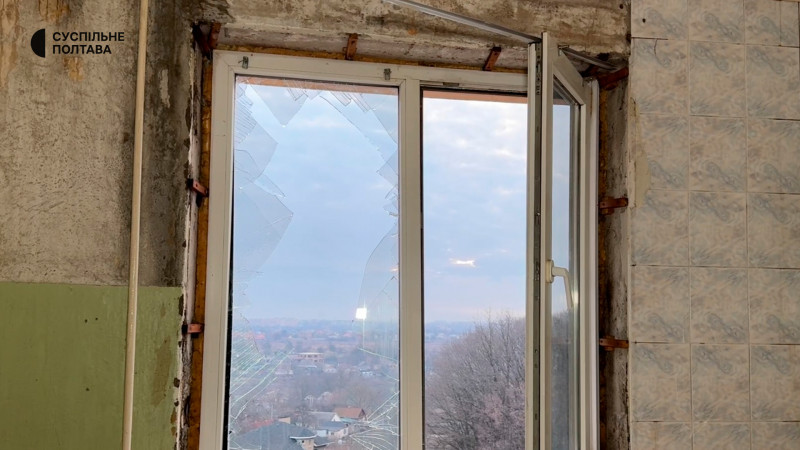 Вибиті шибки та вікна поблизу багатоповерхівки. Суспільне Полтава