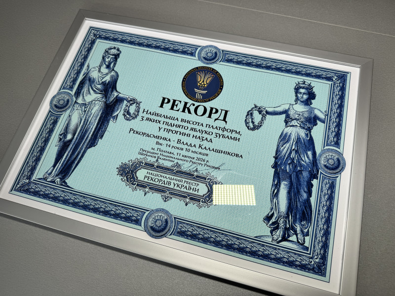 Диплом, який отримала Влада Калашнікова за здобуття рекорду. Суспільне Полтава
