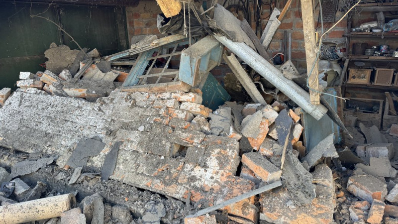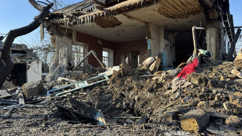 "Вода вже замерзла в хаті, яка в кран постачалась. Пічне опалення — зараз буду протоплювати грубку. Дверей немає повністю, передньої частини даху теж немає. Це тільки на будинку. Фасад пошкоджений, чотири скла, вікна металопластикових пошкоджені. Погрібник з одного боку від забору пошкоджений повністю. Сараю даху немає, вольєр повністю зруйнований. Собаки живі, але хоздвору немає, все, що було огороджено, також нема. І в сусіда пів хати нема", — розповіла місцева жителька Оксана Мусієнко.