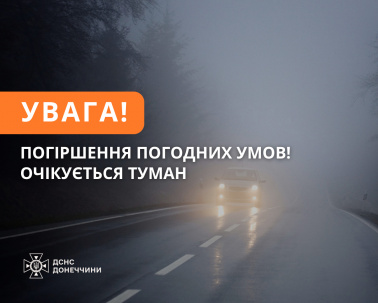 За повідомленням Українського гідрометеорологічного центру, 19 грудня на території Донецької області очікується туман із видимістю 200–500 м (І рівень небезпечності, жовтий).
