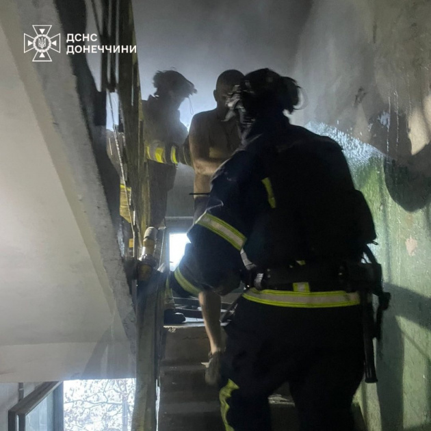 У Дружківці сталася пожежа в квартирі п’ятиповерхового будинку. Під час гасіння рятувальники врятували чоловіка та жінку й надали їм домедичну допомогу.