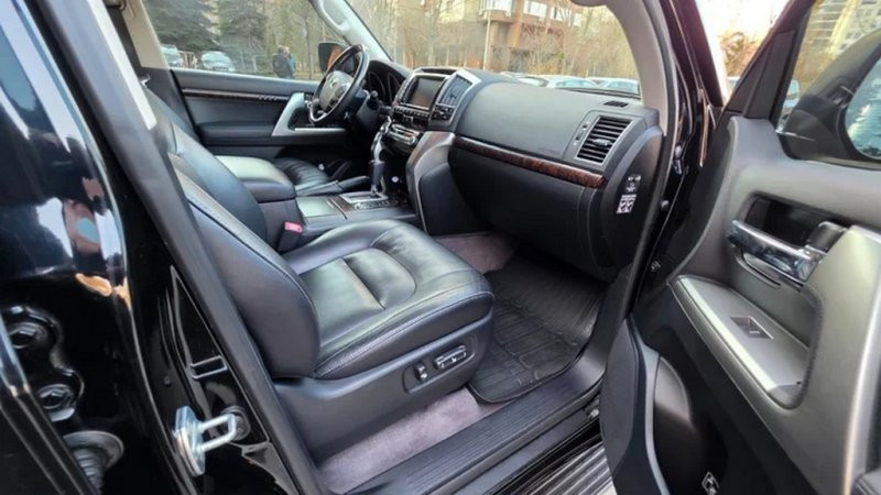 Комплектація Toyota Land Cruiser 200 близька до максимальної. Його салон оздоблений шкірою та деревом, встановлені чотиризонний клімат-контроль, навігація із дисплеєм, камери, парктронік, аудіосистема JBL, електропривід і вентиляція передніх сидінь, підігрів крісел перших двох рядів та керма.