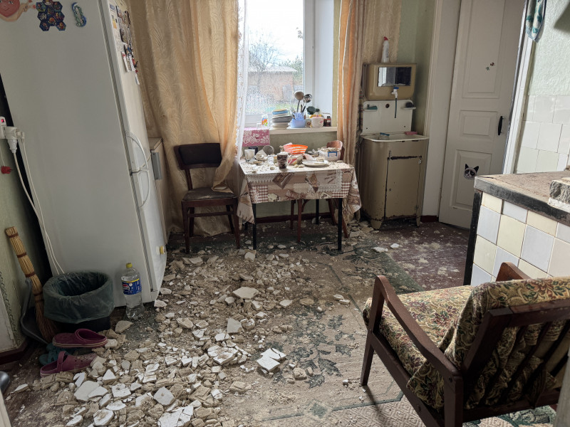 "Я сиділа на своєму ліжку тихо, спокійно. Потім чую — дуже сильний такий звук, щось впало на подвір’я, повилітали вікна. Ми виходимо – там бомба, і туалету немає. Ми всі перелякалися. У нас шок. Даху теж немає".