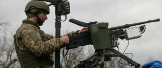 Українська ППО у ніч на 16 листопада знешкодила 139 російських дронів — Повітряні сили Військовослужбовець 125-ї бригади ЗСУ із кулеметом, Харківська область, Україна, 13 листопада 2025 року. REUTERS/Sofiia Война