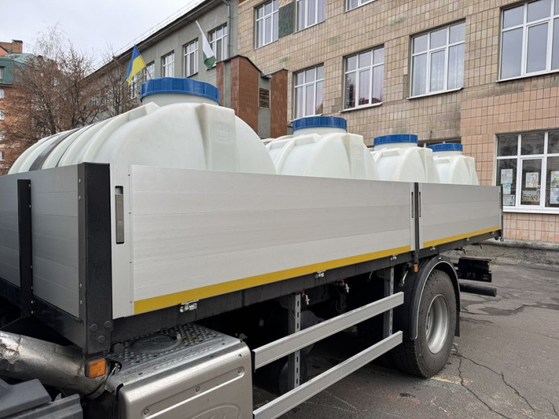 Цистерни з питною водою біля одного з пунктів незламності. Суспільне Полтава