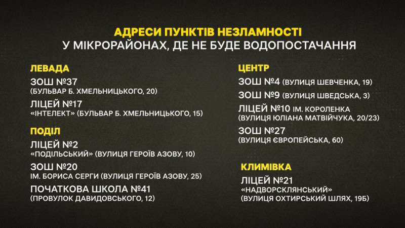 Перелік пунктів незламності у мікрорайонах, де відсутнє водопостачання. Суспільне Полтава