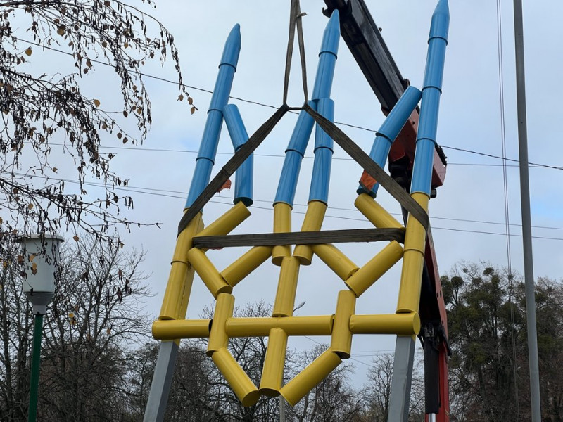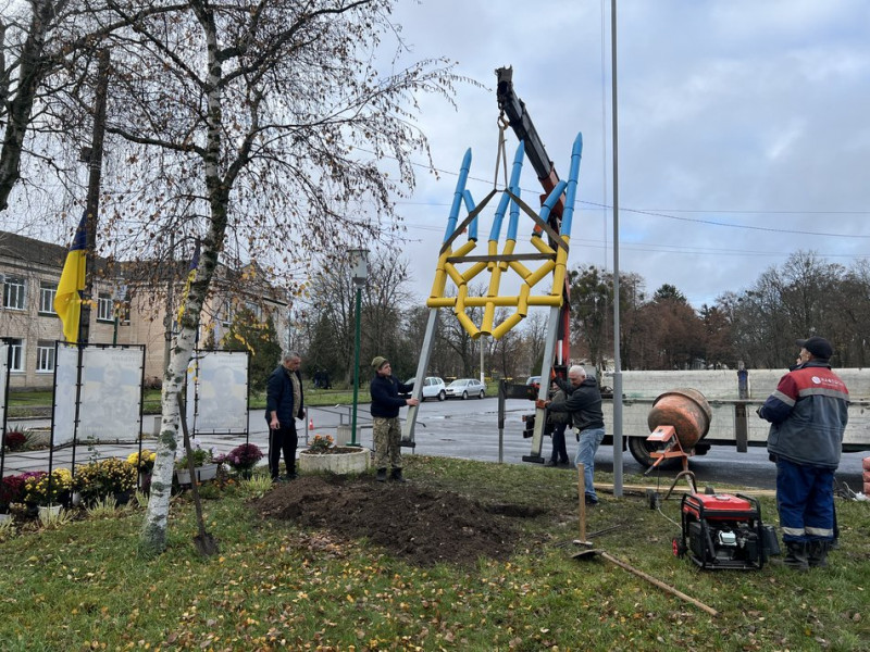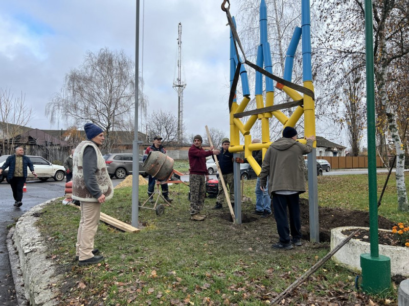 У Диканьці волонтери встановили памʼятний знак «Тризуб», який виготовили військовослужбовці із використаних гільз, зібраних у зоні бойових дій. Суспільне Полтава