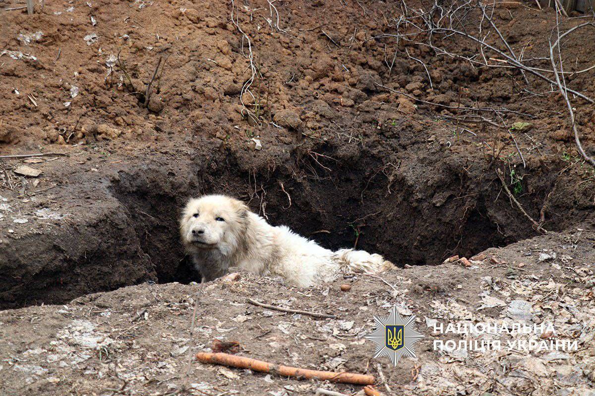 Старий пес опинився в пастці: дезорієнтований, він впав у яму й не міг вибратися. Тварина була на межі загибелі. Про ситуацію повідомили сусіди.