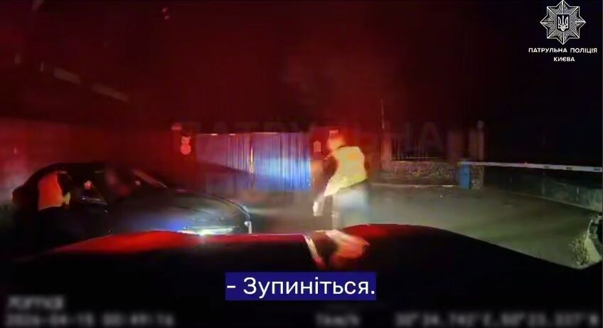 «Інформація про подію на вулиці Будіндустрії в Києві. Патрулюючи Печерський район, ми помітили автомобіль Alfa Romeо, водій якого порушив ПДР. Ми надали керманичу сигнал про зупинку, однак він її проігнорував та пришвидшив рух. Ми поїхали за ним», – розповіли в пресслужбі.