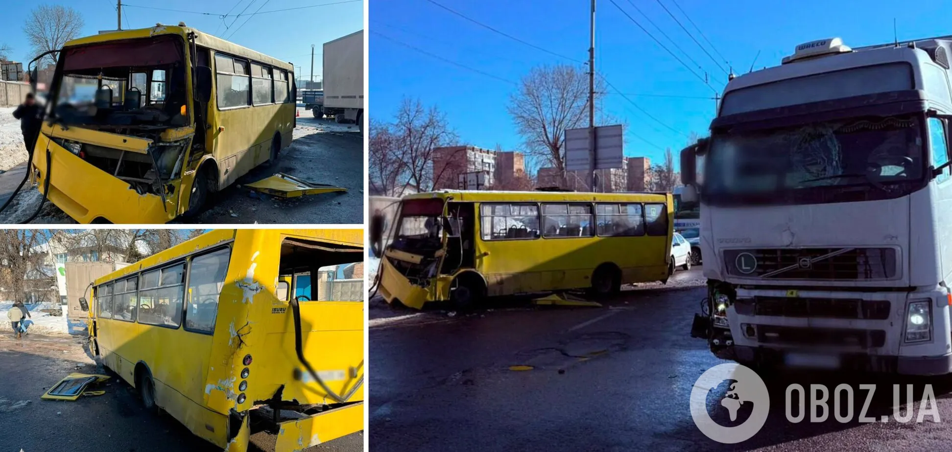 У Києві у вівторок, 10 лютого, сталась ДТП за участі двох вантажівок та маршрутки. Внаслідок зіткнення постраждало щонайменше четверо осіб, які перебували у салоні громадського транспорту.