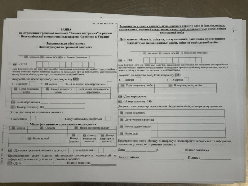 Бланк заяви для отримання «Зимової єпідтримки». Суспільне Полтава
