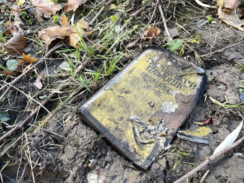 Підручник на землі на місці обстрілу. Суспільне Полтава
