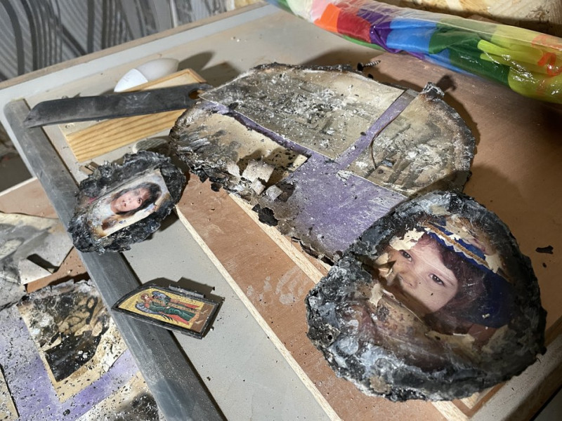 Згорілі світлини у пошкодженій внаслідок обстрілу квартирі Олесі Скиби. Суспільне Полтава