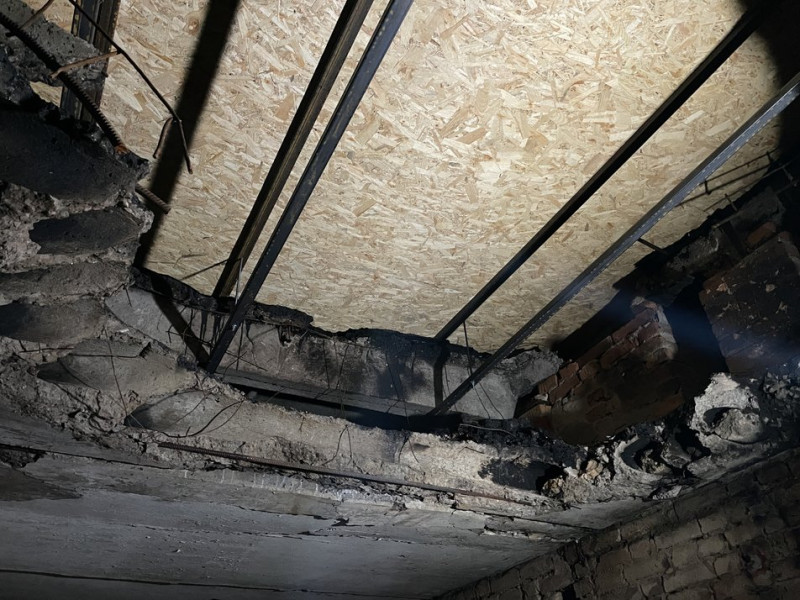 "1-2 жовтня закрили вже повністю дах. Підприємство, якому належить цей будинок, закрило дах. Це залізні балки і ДСП, зверху ніби як закатали руберойдом. Але ж значне пошкодження даху, все одно можна бачити, що підтікає. Вікна закриті, дах закритий, уже не буде потрапляти вітер, дощ, снігу не буде", — поділилася власниця зруйнованої квартири Олеся Скиба.