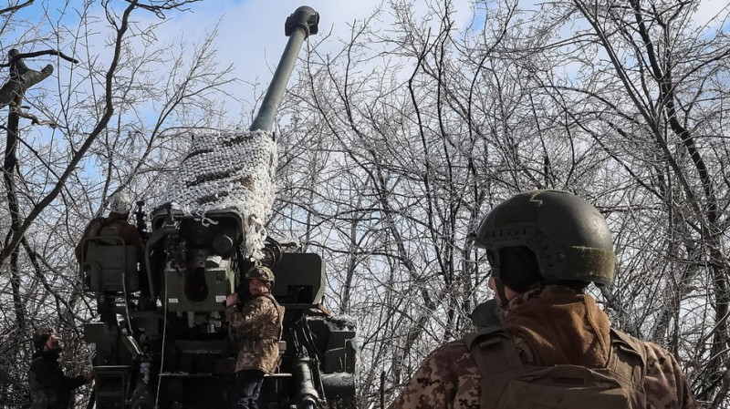 Військовослужбовці 48-ї окремої артилерійської бригади ЗСУ готують самохідну гаубицю «Богдана» до стрільби, Харківська область, Україна, 9 лютого 2026 року. REUTERS/Vyacheslav Madiyevskyy